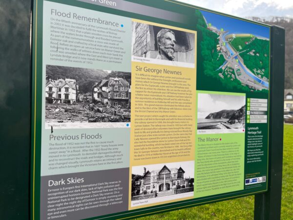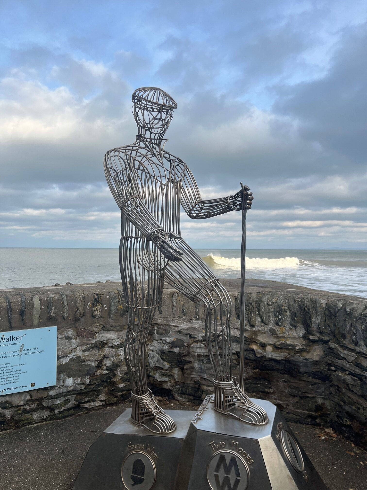 Parking our car perilously close to the high tide we wander passed the closed up shops and cliff railway, and over the fast flowing River Lyn. Boards tell us of the flood disaster in 1952, reminiscent of the events in Tintagel where we walked through 18 months ago.