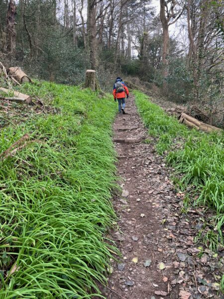 The path follows the beach for a short way then climbs steadily up as it clings to the edge of the Countisbury Hill road. The smell of wild garlic and sight of snowdrops peaking through the leaf litter feels very early, in contrast to our East Sussex woodlands.