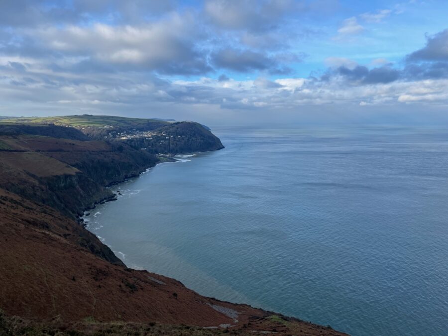 We finally emerge above Porlock Weir with a fabulous view of the bay and Hurlestone Point in the distance.