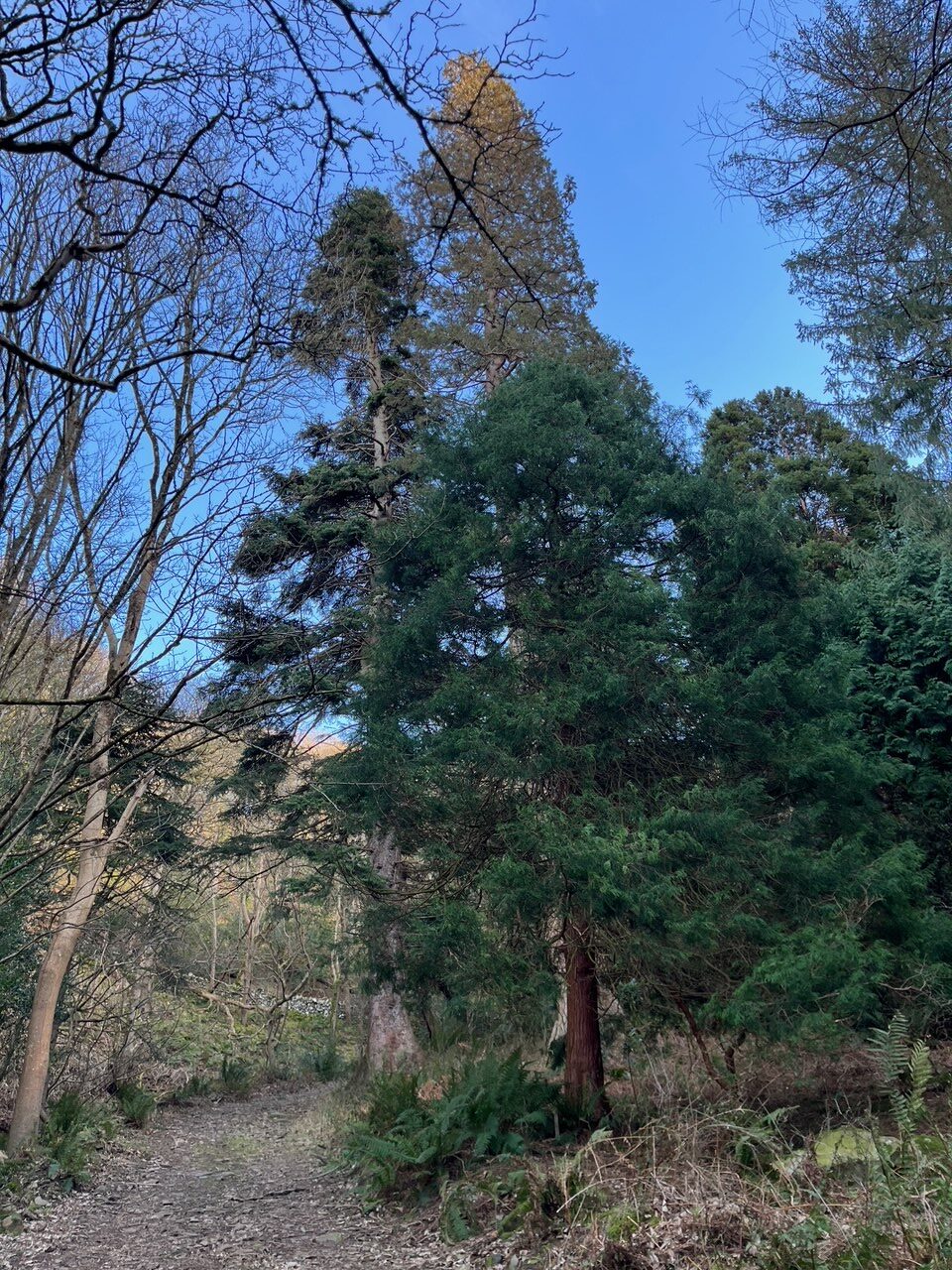 There are many signs of a great estate from years gone by – a stone built gatehouse, rows of beech trees marking a boundary, trout breeding pond, ice house and then to my upmost delight a mini pinetum. Several old, gnarled, yet beautiful conifers, including redwoods and cypresses and one that would have stumped me but for the old wooden sign saying “Chinese Cow’s Tail Pine”, which is in fact Cephalotaxus fortunei!