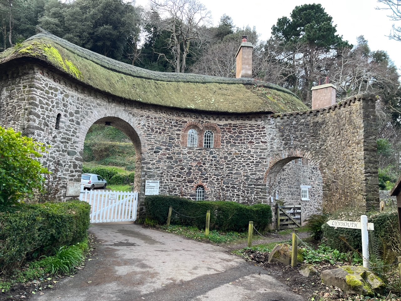 A curved stone gate house with a thatched roof marks the start of the Worthy Toll Road – £2 per car with an honesty box if the toll keeper is absent. We follow the narrow road and footpath into the village for a well=earned drink before the sun goes down and our second night at the Porlock Weir Hotel.