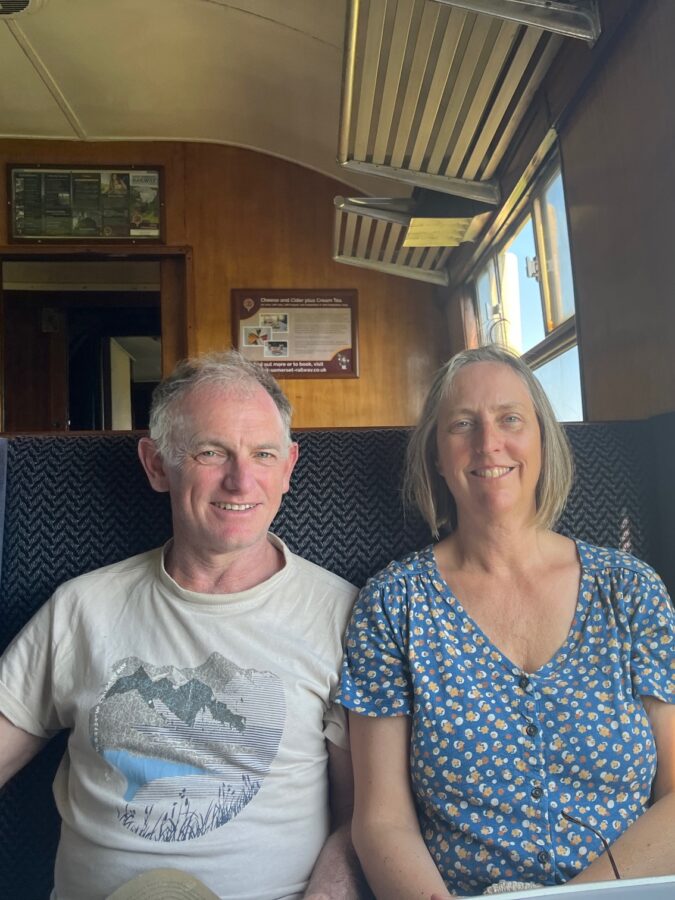 A first for rollercoaster – we (Nigel and I are accompanied by his sister, Heather) arrive at our start point by steam train.  We’ve pitched our tent nearby and driven to Watchett to catch the much delayed but hugely anticipated 14:12 to Minehead.