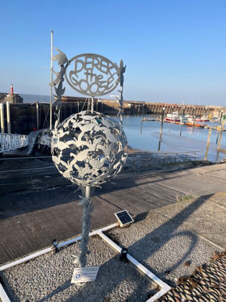 Delightful red brick terraces and stone clad homes line the road into the seaside town.  They certainly seem an arty bunch that live here – there’s a high sea wall adorned with paintings of seaside days gone by; an artwork of a miner made of rusty (and non-rusty) nails; a metal sculpture dedicated to Derek the Goose and a fabulous hand drawn map of the town.