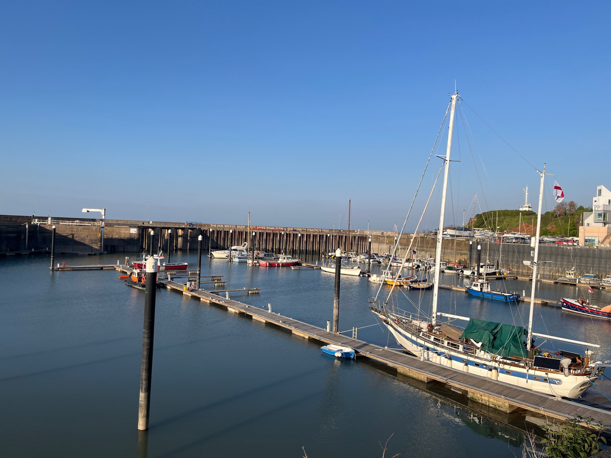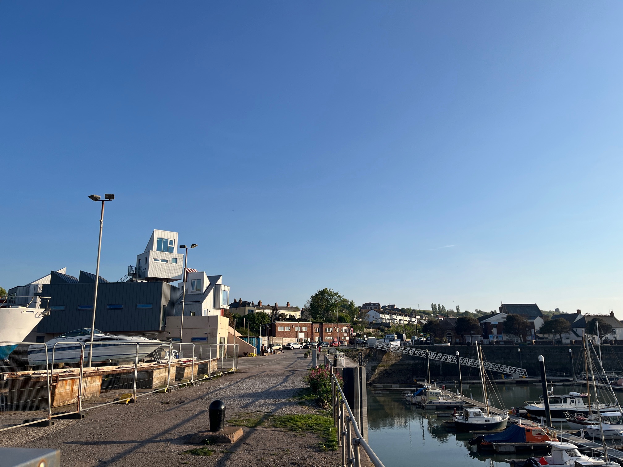 We are drawn to live music across the quay, playing from a former mill, now gallery, shop, holiday homes, artists studio and lively bar and restaurant on the Easy Quay.  Waving at the people in the bath in their pod in the air we vow to come back in the morning for breakfast.