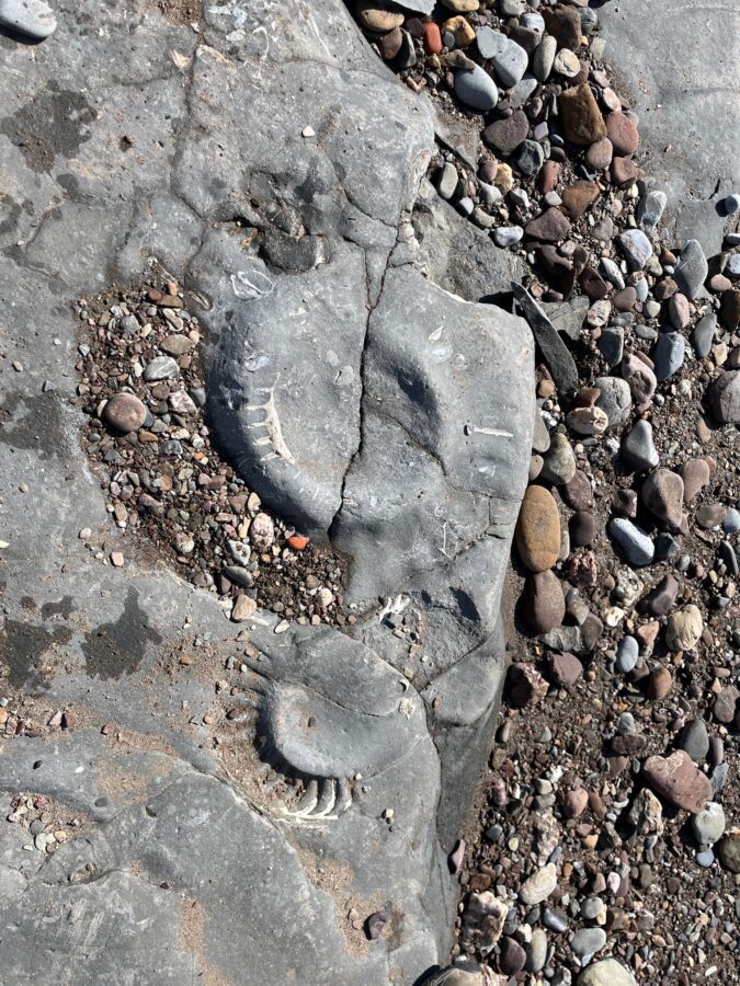 The beach is stony with some incredible intact fossils, some resembling beautifully mascaraed eyelashes!