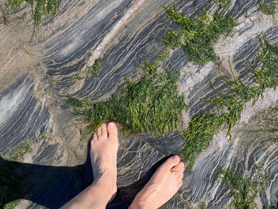 I remove my boots again and enjoy the sensation of the smooth weed covered rocks under foot.