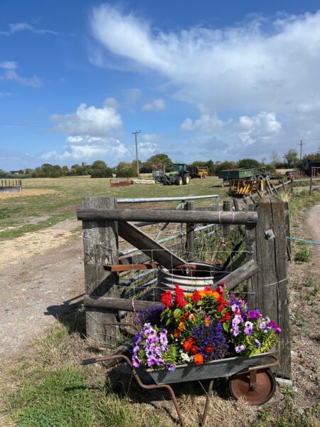It feels like the residents have made a real effort with troughs and wheelbarrows full of summer flower displays. We stop for a short break outside a converted church then pass the immaculate looking Wick St. Lawrence Church, almost dwarfed by the massive yew tree in the churchyard. As a self-confessed tree hugger, I am delighted to find my first conker of the season nestled in the grass below a chestnut tree, followed by many orchards – apple trees drooping with the weight of their autumnal load.